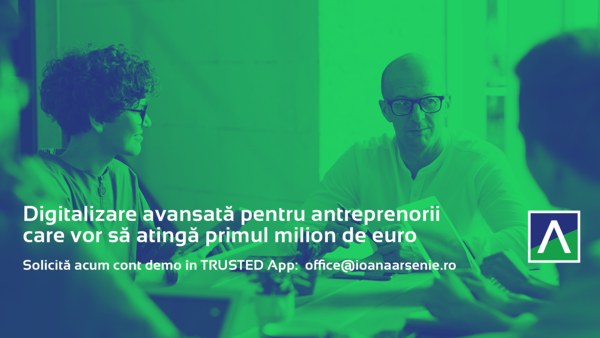 „Am pornit de la ideea de a digitaliza avansat IMM-urile în curs de dezvoltare și la nivel de raportare financiară, știm că la nivel financiar, productivitatea se exprimă prin cifra de afaceri înregistrată sau profit per angajat. Din toate discuțiile cu clienții Trusted Advisor, antreprenorii își doresc o raportare financiară cu o mai mare transparență în zona de management al banilor”, declară Ioana Arsenie, Fondator TRUSTED Advisor și consultant financiar.