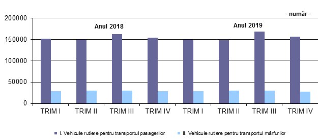 Faţă de trimestrul III 2019, în trimestrul IV 2019 înmatriculările noi de vehicule rutiere au înregistrat scăderi la vehiculele pentru transportul pasagerilor cu 7,3% ṣi cu 8,4% la vehiculele pentru transportul mărfurilor.