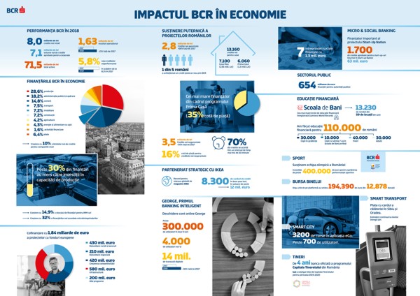 BCR a acționat ca un partener de încredere pentru antreprenorii locali, astfel încât stocul total al finanțărilor pentru întreprinderile mici și mijlocii (IMM), care include și activitatea de leasing, a înregistrat o creştere de 15% față de 2017, depășind 5,4 miliarde de lei (1,2 miliarde de euro).