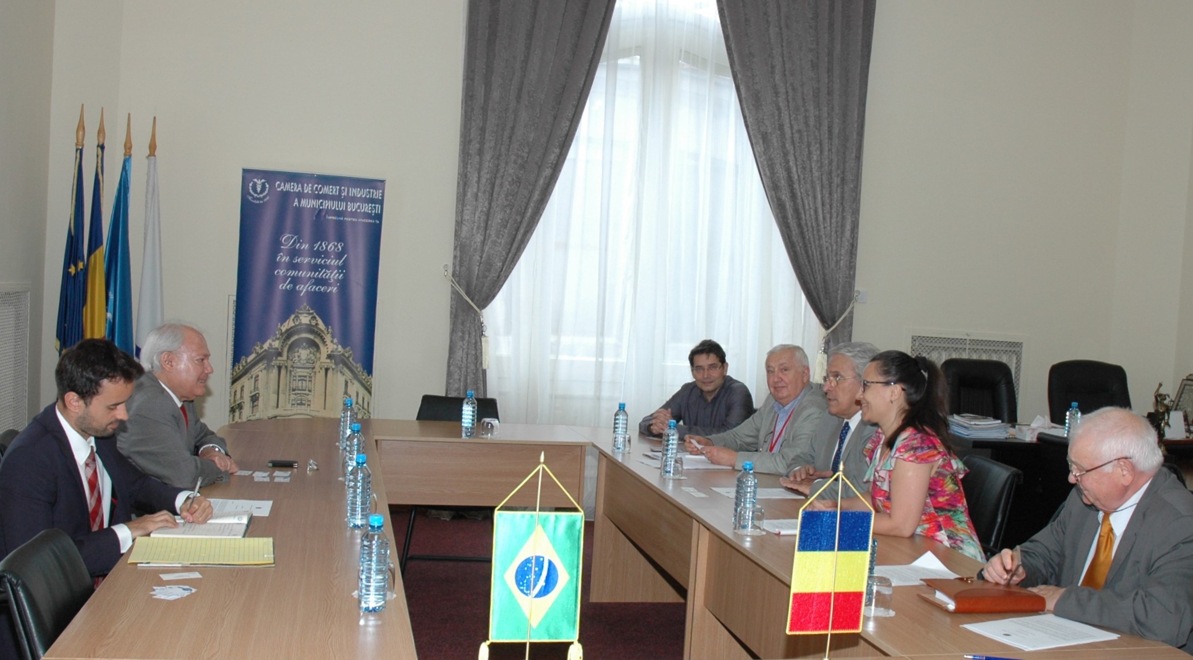 Prof. univ. dr. ing. Sorin Dimitriu, preşedintele Camerei de Comerţ şi Industrie a Municipiului Bucureşti (CCIB), a avut o înâlnire cu E.S. Eduardo Augusto Ibiapina de Seixas, ambasadorul extraordinar şi plenipotenţiar al Republicii Federative Brazilia în ţara noastră, care a fost însoțit de Felipe Alexandre Gomes Sequeiros, secretar III în cadrul Ambasadei. La întrevedere a participat, de asemenea, prof. dr. Ion Hohan, preşedintele Secţiunii Servicii a CCIB, vicepreşedinte ale Camerei bucureştene.