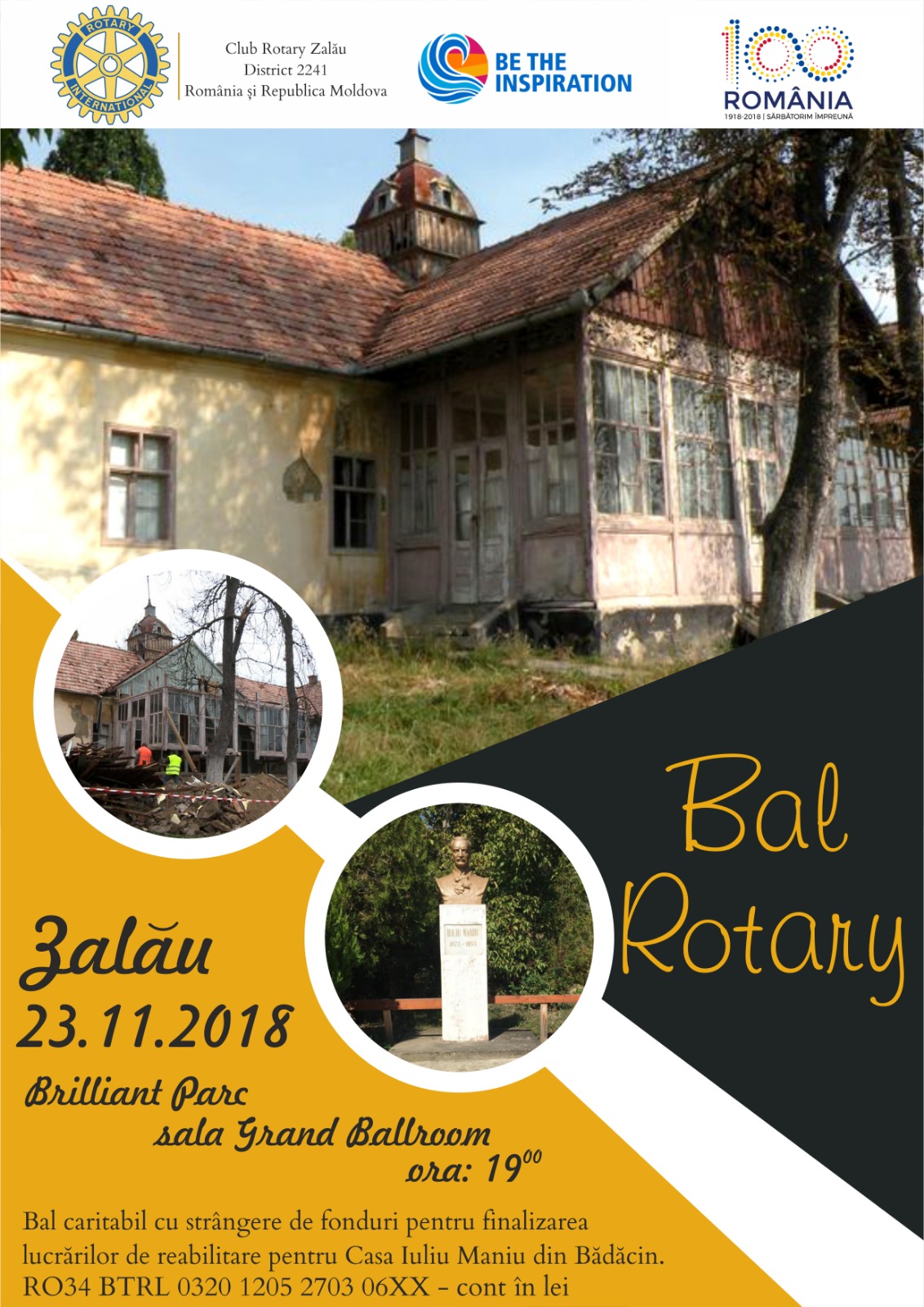 Acțiunea de strângere de fonduri este deja în desfășurare- prin donații în conturile special deschise în acest scop, și va avea punctul culminant sub forma unei gale caritabile, Balul Rotary Zalău 2018, care va avea loc în data de 23 Noiembrie, de la ora 19.00, la Brilliant Parc (Str. George Coșbuc nr. 1) din Zalău.