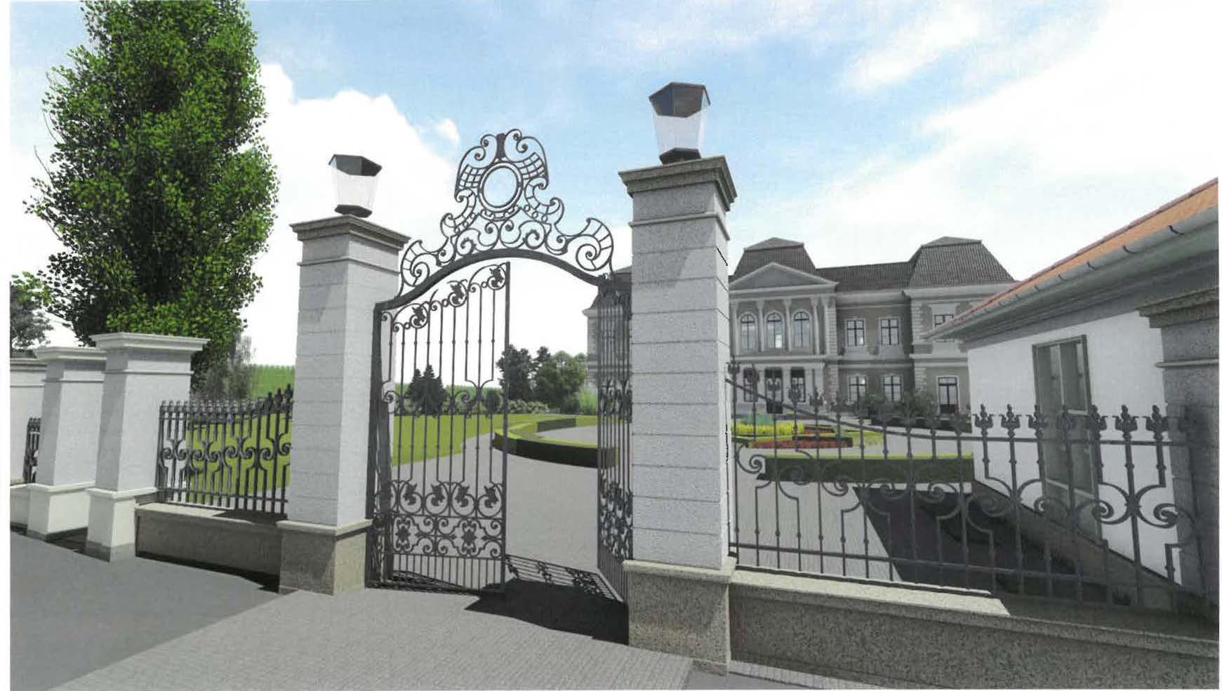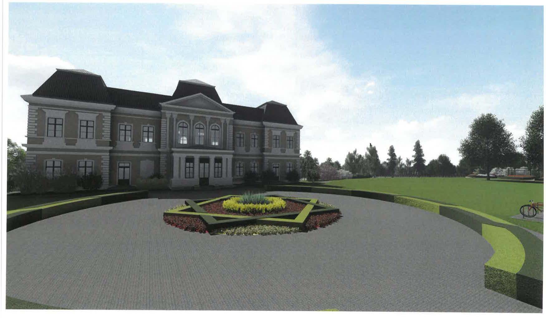Totodată, pentru partea exterioară a clădirii s-a decis amenajarea parcului ornamental, decolmatat, curățat și taluzat, cu o insulă în mijloc. Obiectele arhitecturale restaurate și care se vor regăsi în parc sunt pontonul, pasarela peste canal, poduri peste șanț, pavilion, porumbar, fântâna arteziană și zidul de sprijin.