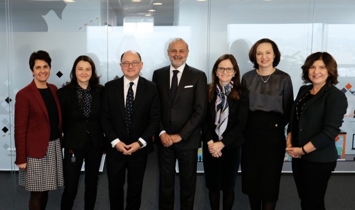 În poză, de la stânga la dreapta: Elena Ungureanu – Country Manager Visa România Visa, Adela Guedon – CFO în cadrul Orange România, Cătălin Crețu – General Manager pentru România, Croația, Malta și Slovenia în cadrul Visa, Haris Hanif – CEO în cadrul Orange Money România, Charlotte Hogg – CEO în cadrul Visa Europe, Liudmila Climoc – CEO în cadrul Orange România, Berna Ulman – Executive Director for South Eastern Europe în cadrul Visa