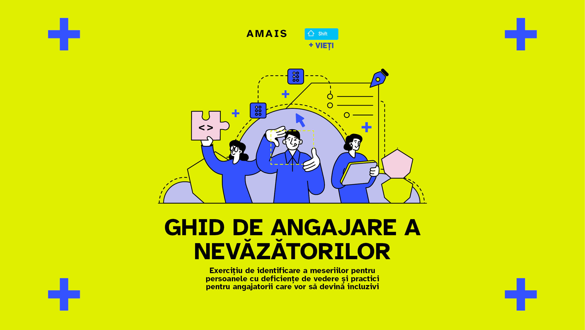 Ghid de angajare a nevăzătorilor face parte din inițiativa Shift+Vieți, lansată de Fundația Comunitară București și ING Tech România. Shift+Vieți își propune să sprijine persoanele cu dizabilități să aibă acces mai ușor pe piața muncii din România.