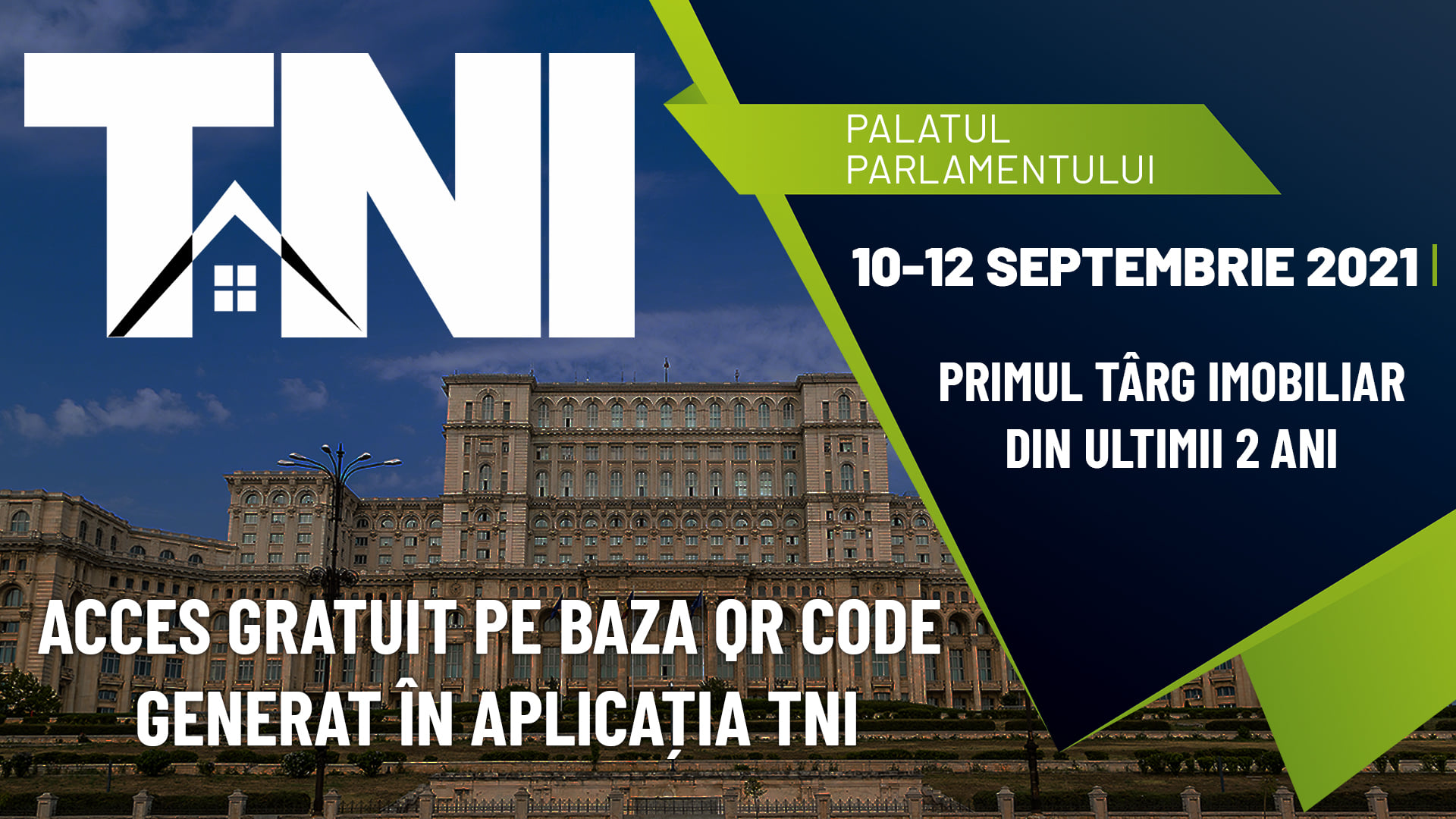 Primul târg imobiliar organizat în ultimii 2 ani începe VINERI, 10 SEPTEMBRIE, ORA 10.00 la Palatul Parlamentului, Sala Unirii. Târgul Național Imobiliar TNI are loc până duminică, 12 SEPTEMBRIE și reunește peste 20.000 de oferte imobiliare de locuințe noi și vechi, vile, case de vacanță, terenuri, spații de birouri din București, ILFOV, Constanța, Timișoara, Valea Prahovei, Dubai, Spania și Cipru.