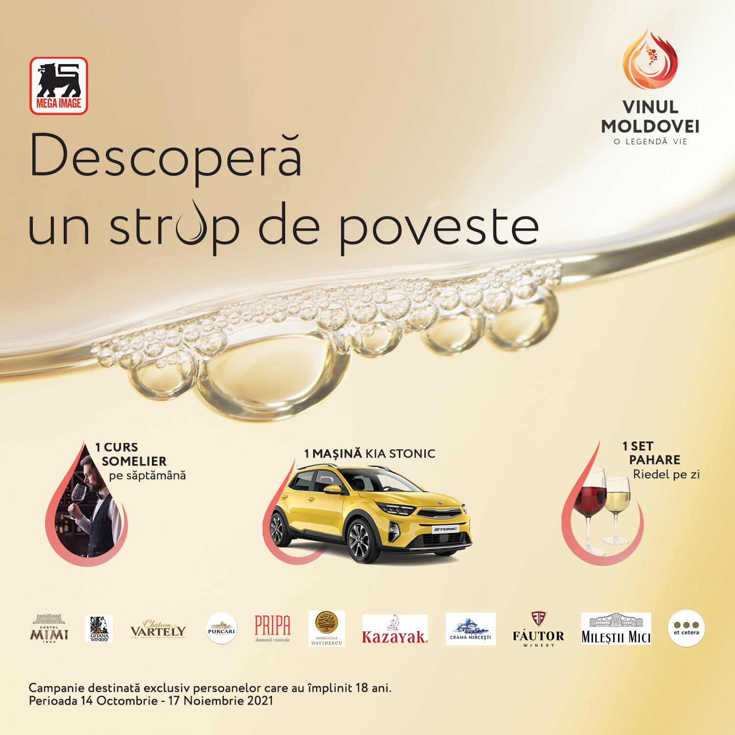 București, 20 octombrie 2021 – Wine of Moldova vine în întâmpinarea iubitorilor de vin, lansând campania „Descoperă un strop de poveste” în cadrul rețelei Mega Image. Între 14 octombrie și 17 noiembrie, Vinul Moldovei îi invită pe români să sărbătorească momentele speciale cu un pahar de vin produs pe meleagurile Republicii Moldova, răsplătindu-i cu premii pe măsură.