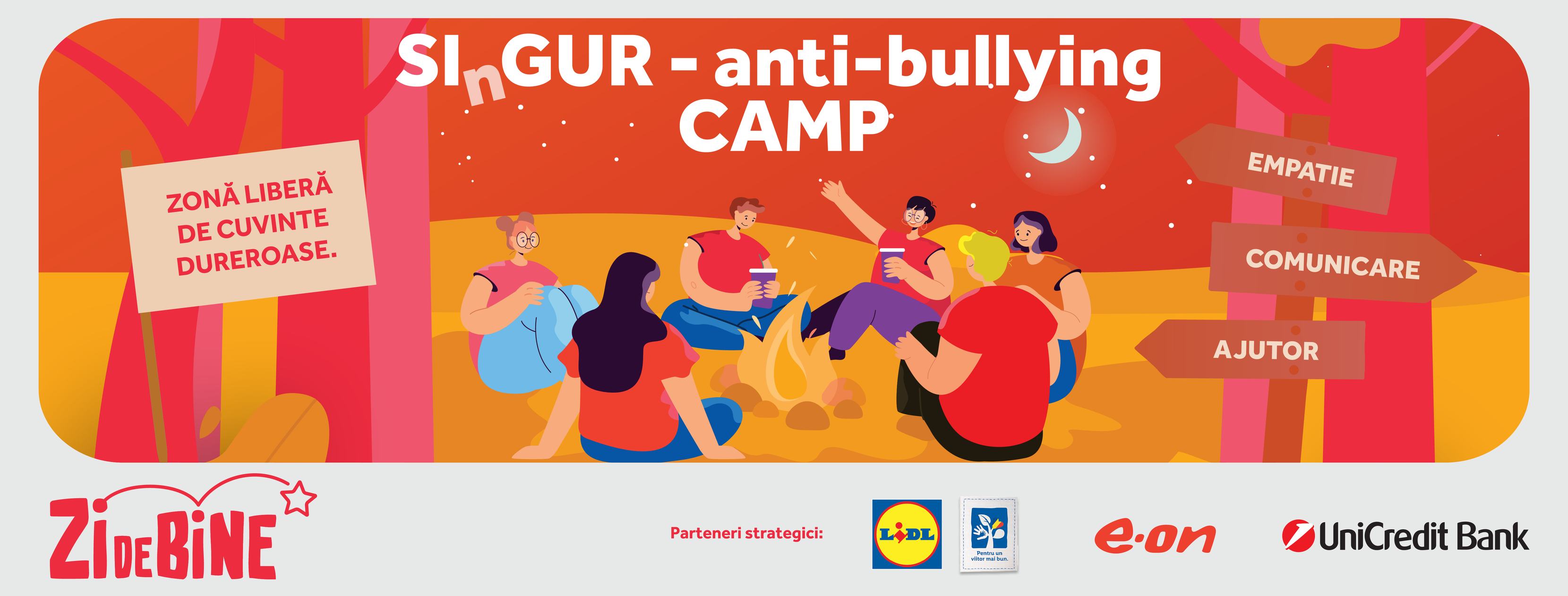 În această lună,E.ON susține proiectul #Singur – anti-bullying CAMPinițiat de Asociația Zi de Bine, care organizează o tabără anti-bullying dedicată copiilor, părinților și profesorilor, în continuarea unui proiectdemarat în luna iunie. Aceasta va avea loc la Straja, jud. Hunedoara, în perioada 14-21 august, și va cuprinde activități cu scop terapeutic, susținute de specialiști.