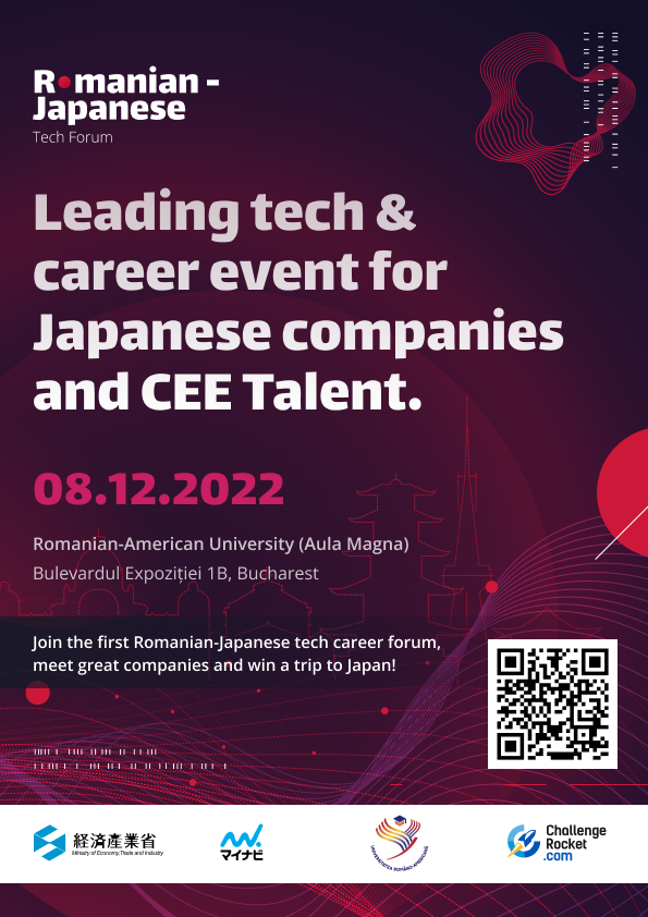 Forumul reunește 14 companii japoneze din domeniul tehnologiei, care își vor prezenta activitatea și oportunitățile de carieră, cu scopul de a recruta personal din România și de a construi noi relații de business cu țara noastră.