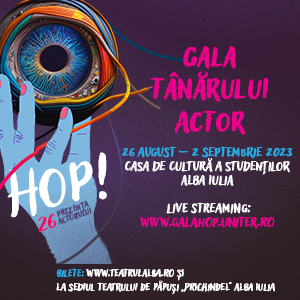 Ediția cu numărul 26 a Galei Tânărului Actor HOP – program al UNITER aflat sub direcția artistică a regizorilor Alexandru Dabija și Leta Popescu – se va desfășura, pentru al treilea an consecutiv, la Casa de Cultură a Studenților din Alba Iulia, în perioada 30 august-2 septembrie 2023.
