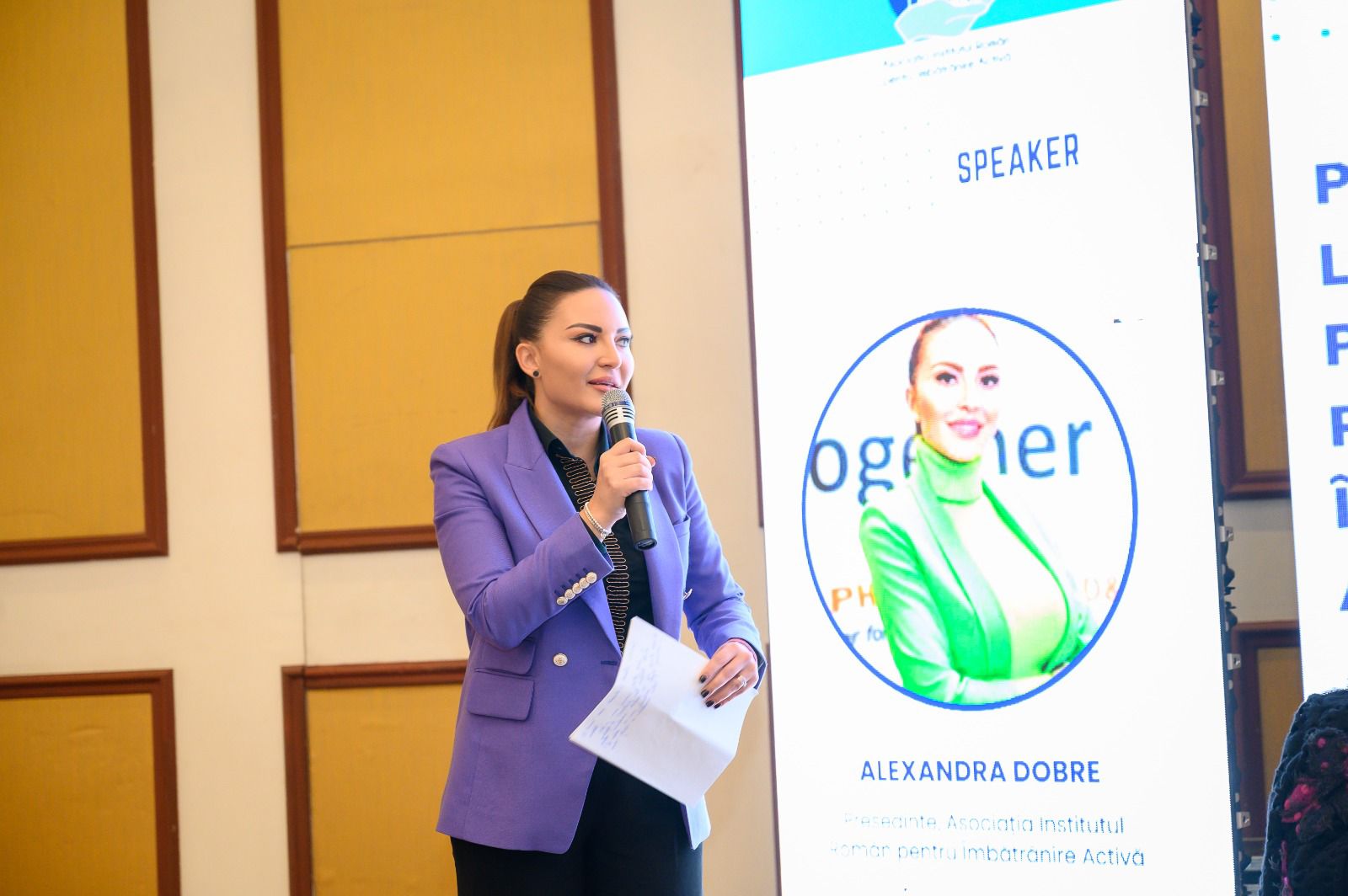 Alexandra Dobre, Președinta Asociației Îmbătrânire Activă, a subliniat în deschiderea conferinței: „Longevitate nu înseamnă neapărat să trăim mai mult, ci înseamnă să trăim mai bine, mai frumos, mai prosper, mai independent, să putem călători. E necesar să fim conștienți de fenomenul îmbătrânirii, să îmbătrânim activ și să nu vedem vârsta a treia ca pe finalul vieții. Vrem să înființăm Agenția Națională a Persoanei Vârstnice, care să se ocupe de activități de îmbătrânire activă, de accesare de fonduri, de seniori”.