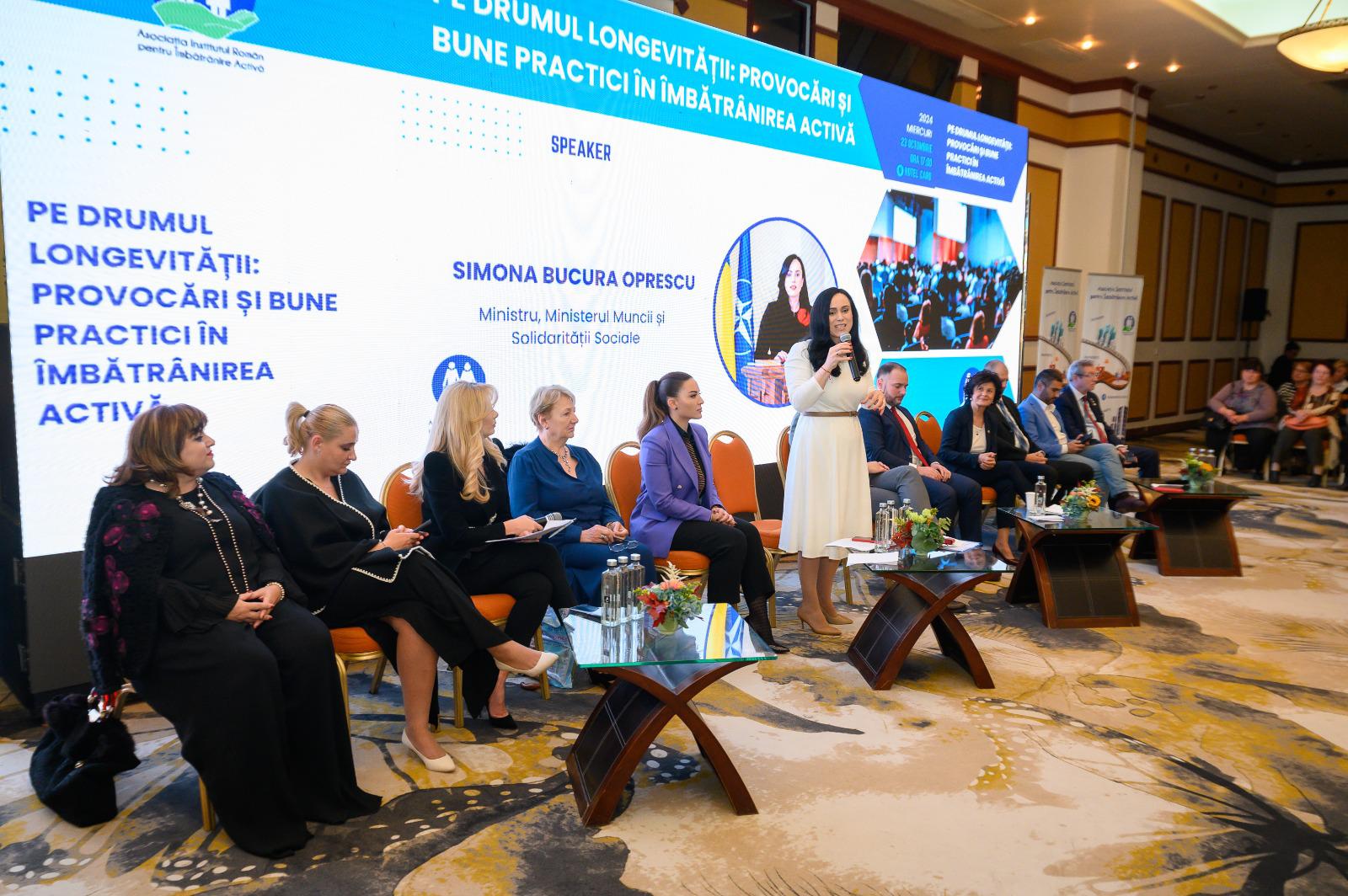 Simona Oprescu Bucura, Ministrul Muncii și Solidarității Sociale, a abordat importanța unei îmbătrâniri demne și a sprijinului intergenerațional: „Premierul Marcel Ciolacu, viitorul președinte al României, ne-a întrebat pe fiecare în parte ce ne dorim de la România. Eu îmi doresc să se nască cât mai mulți românași, cât mai mulți copii și cât mai mulți dintre ei să aibă bunici ca dumneavoastră. Îmi doresc să avem locuri de muncă pentru tineri, să câștige bine, să poată plăti contribuțiile așa încât să susțină niște pensii decente. Eu îmi doresc, pentru mine și pentru copilul meu, să trăim bătrânețea ca pe o a treia tinerețe”.