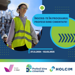 Silvia Bogdan, președinte Școala de Valori și coordonator Departament Educație-Cercetare: „Tinerii de astăzi doresc mai mult, inclusiv oportunități de formare mai bune, mentorat de la specialiști cu experiență solidă, rutine flexibile și un alt echilibru între viața profesională și cea privată. De aceea, împreună cu Holcim am creat Profesii Bine Cimentate, un program pentru studenți, gândit astfel încât să ofere acestora acces la resurse valide și dezvoltare de abilități umane, aptitudini tehnice și competențe specifice industriei cimentului.”