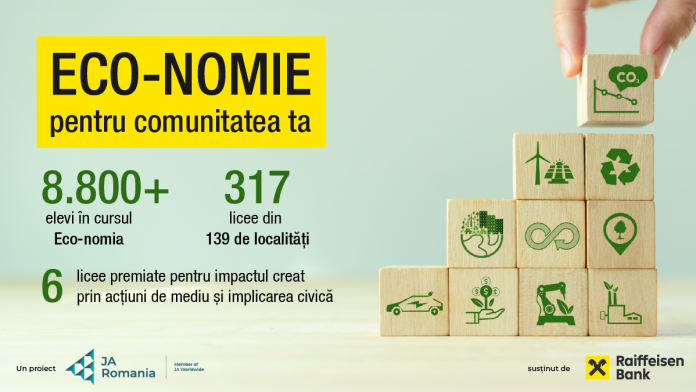 În cea de-a doua ediție a proiectului Eco-nomie pentru comunitatea ta, Junior Achievement România și Raiffeisen Bank au continuat să pună la dispoziția liceelor resurse educaționale și webinare tematice care vin în sprijinul educării modului în care elevii pot face alegeri sustenabile în ceea ce privește consumul de resurse.