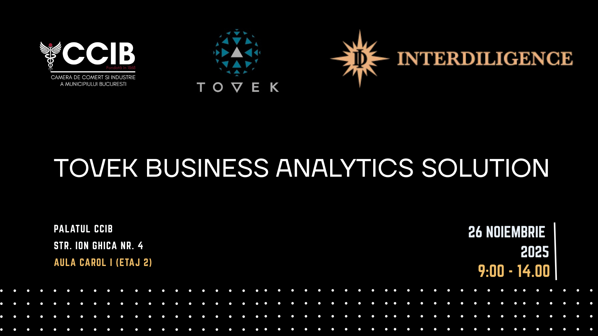 Având sprijinul Camerei de Comerț și Industrie a Municipiului București, evenimentul este organizat de TOVEK, alături de INTERDILIGENCE, companie de investigații economice și management strategic, care a testat sistemul în operațiuni reale și va prezenta modul în care platforma este folosită în companii private și în instituții cu rol analitic.