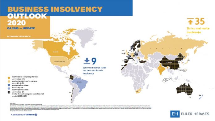 - Tendința ascendentă a insolvențelor în afaceri a continuat în 2019 pentru al treilea an la rând: + 9% an/an, potrivit indicelui Euler Hermes Global Insolvency, care acoperă 44 de țări care reprezintă 87% din PIB-ul global.