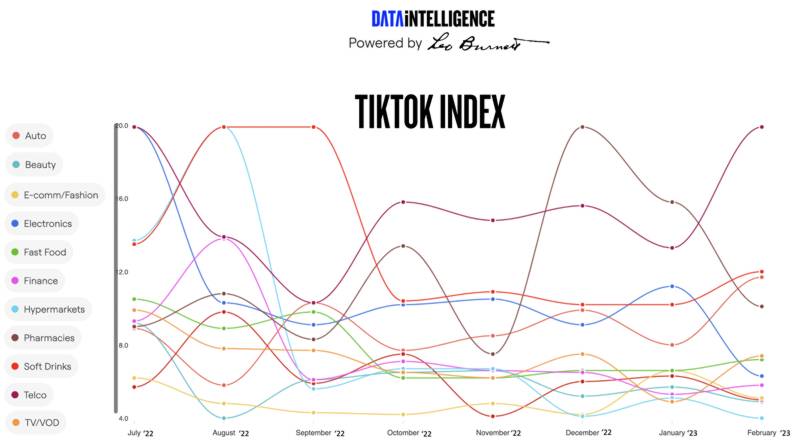 București, 20 martie 2023: Leo Burnett Bucharest, împreună cu divizia de DATA Intelligence a Publicis Groupe România, au creat TikTok Index, primul instrument creat pe specificul acestei platforme de comunicare, pentru a măsura performanța conținutului brandurilor și a identifica ce aduce cea mai mare valoare adăugată în fiecare industrie monitorizată. Instrumentul urmărește 12 industrii – fast food, soft drinks, hypermarkets, farmacii, financiar, electronice, telecomunicații, TV video on demand, auto, e-comm fashion, beauty – și este în continuă extindere.