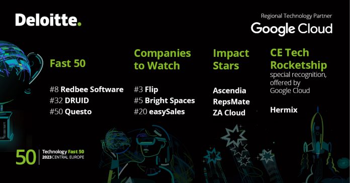 București, 24 noiembrie 2023 – Redbee Software, DRUID și Questo sunt companiile românești incluse în categoria principală a clasamentului Deloitte Technology Fast 50 Europa Centrală 2023, care oferă recunoaștere start-upurilor de tehnologie cu cea mai mare creștere din regiune. Compania Redbee Software, specializată în realizarea de soluții software web și mobile cu ajutorul tehnologiilor de ultimă oră, care a dezvoltat o aplicație ce face previziuni legate de evoluția bursei pentru a ajuta utilizatorii să-și definească strategiile de investiții și să sporească încrederea din partea investitorilor, ocupă locul 8, cu o rată de creștere de 2.698%, înregistrată în perioada 2019-2022. DRUID, compania specializată în dezvoltarea de asistenți virtuali inteligenți dedicați proceselor complexe din organizații, ocupă locul 32, cu o creștere de 875%, iar Questo, care a creat o platformă pentru jocuri desfășurate în aer liber, ocupă locul 50, cu o rată de creștere de 663%.