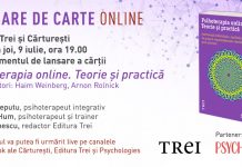 Editura Trei și Cărturești vă așteaptă online, joi, 9 iulie, ora 19.00, la evenimentul de lansare a cărții Psihoterapia online. Teorie și practică -...