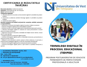 INFO: https://admitere.uvt.ro/program/tehnologii-digitale-in-procesul-educational-2/