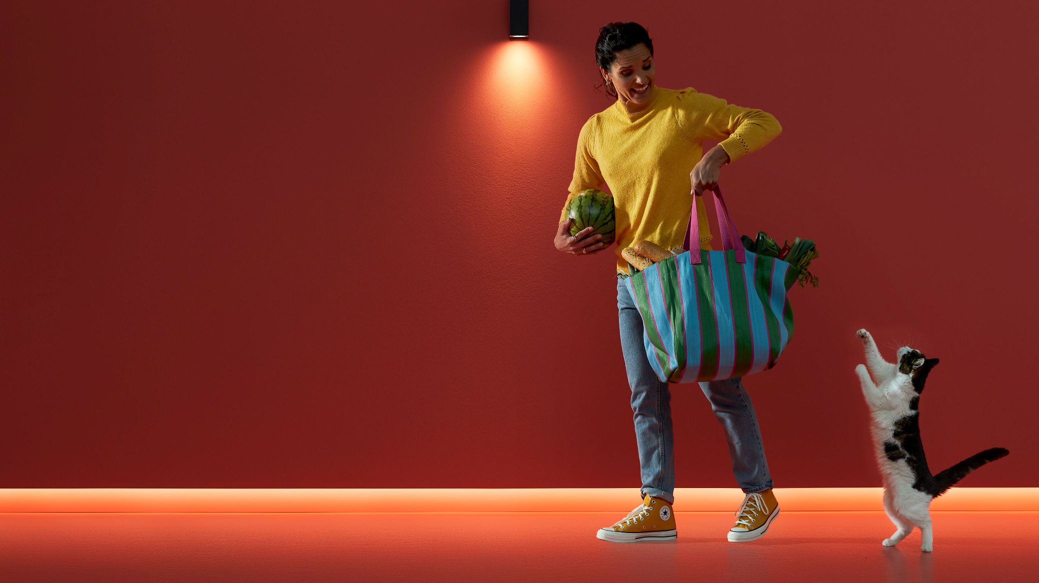 Bar Linear Light – o șină cu lumini multicolore, ușor de integrat în spații mici. Această lampă este alegerea potrivită pentru a adăuga un aer relaxat oricărui spațiu din casă – fie că evidențiază decorul casei, fie că este vorba de o vitrină sau un raft de cărți.