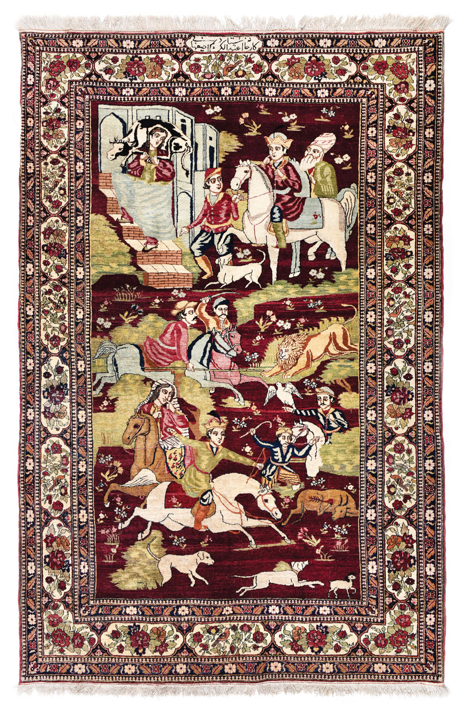 Înduioșat de povestea de dragoste princiară, maestrul persan Abdolkarim Esfahani realiza acum două secole o capodoperă a artei decorative, un covor prezent în licitația Artmark din 28 februarie. Cu peste 1.000.000 de noduri, Covorul Isfahan din lână ilustrează o scenă de vânătoare din poemul lui Nizami Ganjavi și pleacă în licitație de la un preț de pornire de 19.000 €.