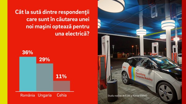 Românii sunt printre cei mai deschişi europeni la ideea de a achiziţiona autovehicule electrice, relevă un studiu realizat de E.ON şi Kantar EMNID, conform căruia 36% dintre cei care în momentul sondajului erau în căutarea unei maşini noi, intenţionau să cumpere una electrică. Cu acelaşi procent se laudă şi italienii, însă într-un context total diferit.