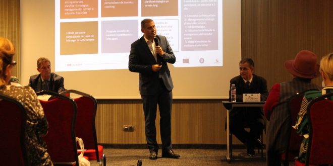 Consiliul National al Intreprinderilor Private Mici si Mijlocii din Romania (CNIPMMR) implementeaza in perioada 4 mai 2019 – 19 octombrie 2019 proiectul SME Academy POCU/227/3/8/117398. Obiectivul general al proiectului este reprezentat de promovarea unei ocupări sustenabile și de calitate a forței de muncă din regiunile Nord Est, Centru si Sud Est, prin oferirea unor cursuri integrate de formare profesionala pentru 600 de întreprinzători, manageri și angajați ai departamentelor de resurse umane, în vederea adaptării activității acestora la dinamica sectoarelor economice cu potențial competitiv, proiect cu o valoare totală de 3,263,629.30 lei (100% finanțare nerambursabilă).