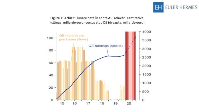 Fără limite: Dat fiind această creștere abruptă a ritmului de achiziții lunare, BCE a spus adio limitei de 33% per emitent – aceasta fiind o limită autoimpusă de a nu deține mai mult de o treime din datoria unei țări. Nu există încă o decizie oficială privind ridicarea limitei, însă în opinia Euler Hermes aceasta este o formalitate care va urma în scurt timp având în vedere că BCE implementează anunțul legat de Programul Pandemic de Achiziții de Urgență (PEPP). Între timp, limita de capital va fi menținută, însă va fi aplicată „într-o manieră flexibilă”, care permite abateri temporare. În cele din urmă, BCE a afirmat că „este pe deplin pregătită” să mărească programul „cu atât cât va fi necesar și pe cât de mult timp va fi necesar” și este pregătită să „exploreze toate opțiunile și situațiile neprevăzute pentru a sprijini economia să traverseze acest șoc”. Astfel, în cazul unei deteriorări viitoare semnificative a condițiilor financiare se așteaptă anunțarea unor măsuri suplimentare de politici neconvenționale și creative pe termen scurt.