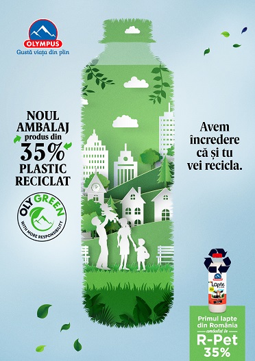 În 2017, ca parte din strategia de sustenabilitate a companiei, Olympus a implementat în fabrică reciclarea selectivă și a inaugurat propria stație de producție de biogaz, în urma unei investiții de 4 milioane de euro. Tehnologia folosită a ajutat la reducerea cu pâna la 40% a gazului metan și la scăderea semnificativă a emisiilor de dioxid de carbon ale fabricii. Anul acesta, Olympus își continuă angajamentul și devine primul brand în categoria produselor lactate care introduce sticla r-PET, cu pâna la 35% plastic reciclat și 100% reciclabilă. Utilizarea r-PET (PET reciclat), în comparație cu PET-ul convențional, reduce emisiile de dioxid de carbon cu 52%, contribuind în practică la protecția mediului și a planetei în sine.