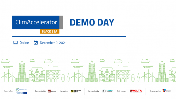 13 decembrie 2021. Actori cheie ai ecosistemului local și internațional care sprijină inițiativele de ecoinovare s-au reunit în cadrul Black Sea ClimAccelerator Demo Day, pe 9 decembrie. 12 startup-uri românești și-au prezentat soluțiile și au primit recomandări de la mentori și investitori. Demo Day marchează sfârșitul ediției din 2021 a Black Sea ClimAccelerator, programul amplu de sprijinire a startup-urilor ecoinovatoare din România și Bulgaria, prin mentorat, consultanță de specialitate și finanțare nerambursabilă. Programul este finanțat cu sprijinul EIT Climate-KIC și organizat de către Impact Hub Bucharest și Raiffeisen Bank România, respectiv The Climate Vertical și Volta, ca parteneri principali, alături de Innovation Starter în Bulgaria.