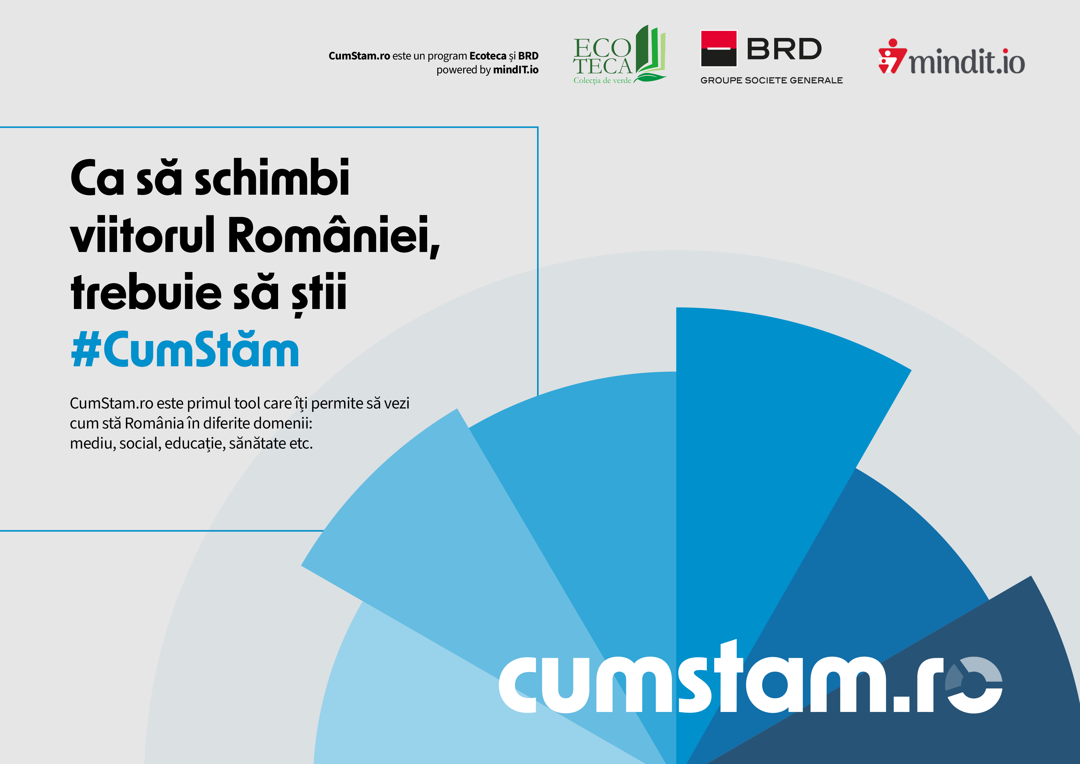 BRD și Asociația Ecoteca lansează astăzi platforma CumStam.ro, un instrument gratuit care arată starea României prin date, statistici și grafice ușor de urmărit și interpretat. CumStam.ro, dezvoltat împreună cu mindIT.io, poate genera schimbare la 180 grade în societate, pentru că ajută în luarea unor decizii informate mult mai rapid și în baza unor indicatori relevanți.