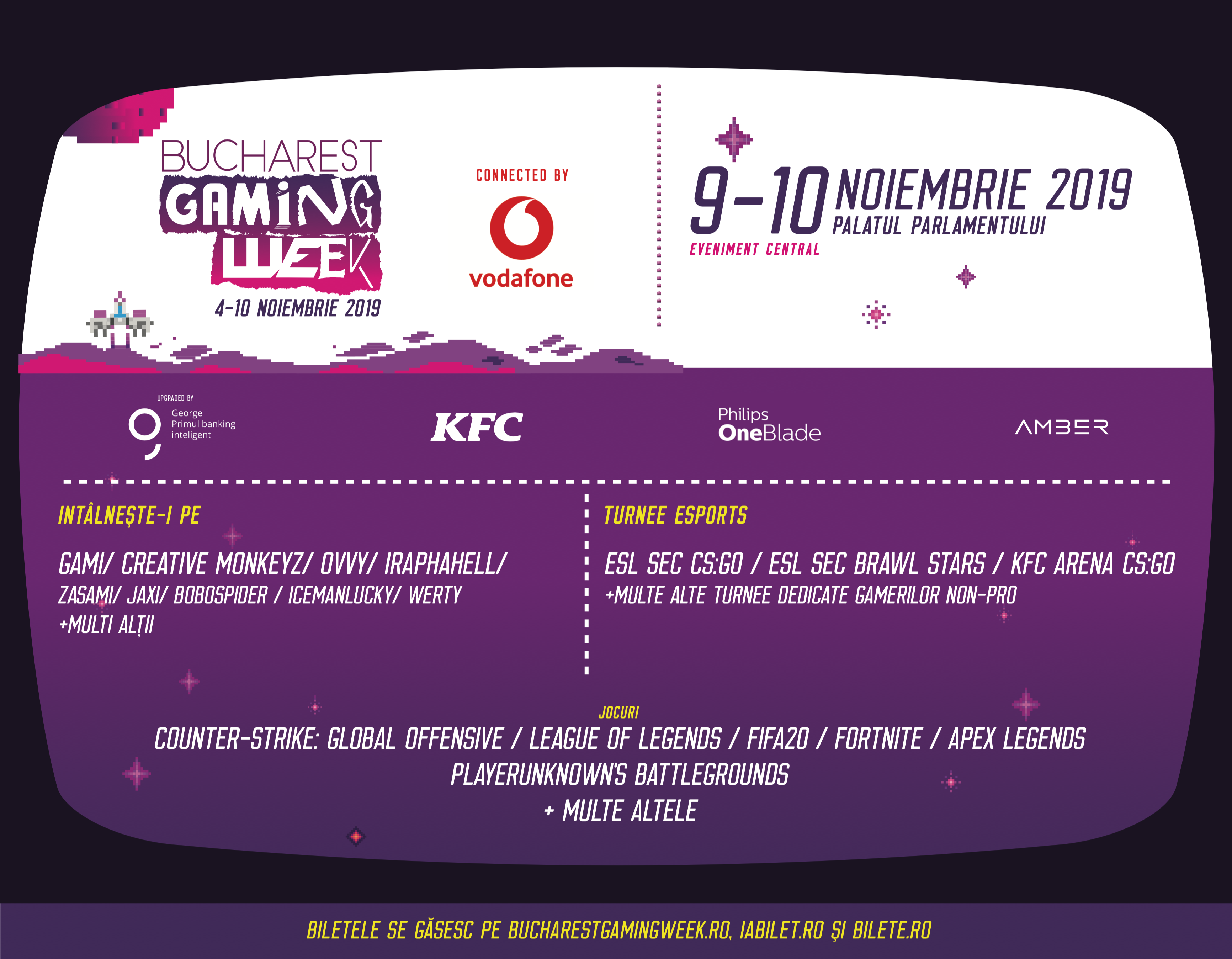 - Vodafone este partenerul principal al Bucharest Gaming Week 2019, unul dintre cele mai importante și emblematice festivaluri de gaming din România și Europa de Sud-Est
