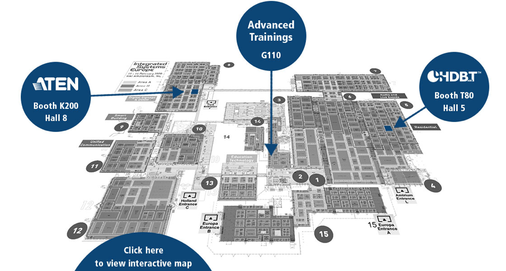 În calitate de membru contribuitor al HDBaseT, ATEN va fi de asemenea prezentă la standul HDBaseT (hala 5, standul T80). Echipa va prezenta soluțiile HDBaseT pentru spații de ședință și va realiza demonstrații cu transmițătorul HDMI & VGA HDBaseT în format european VE2812EUT, switch-ul pentru prezentări VP1421cu rutare video 4K, scalare, DSP și HDBaseT-Lite și receiver-ul HDMI HDBaseT cu funcție de extragere a conținutului audio, alături de multe alte produse, precum soluția de extindere KVM DVI HDBaseT pe interfață USB ATEN CE611.