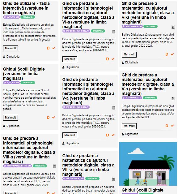 La nivel național, platforma Digitaliada pune la dispoziția cadrelor didactice și a tuturor celor interesați peste 4.000 de resurse digitale educaționale gratuite: materiale Digitaliada pentru Matematică și Informatică (teste și evaluări semestriale în format digital, proiecte didactice, ghiduri, tutoriale video), precum și peste 500 de resurse create și înscrise de profesori, pasionați de IT, precum și de copii cu vârste între 14-18 ani în cadrul concursului anual #Digitaliada.