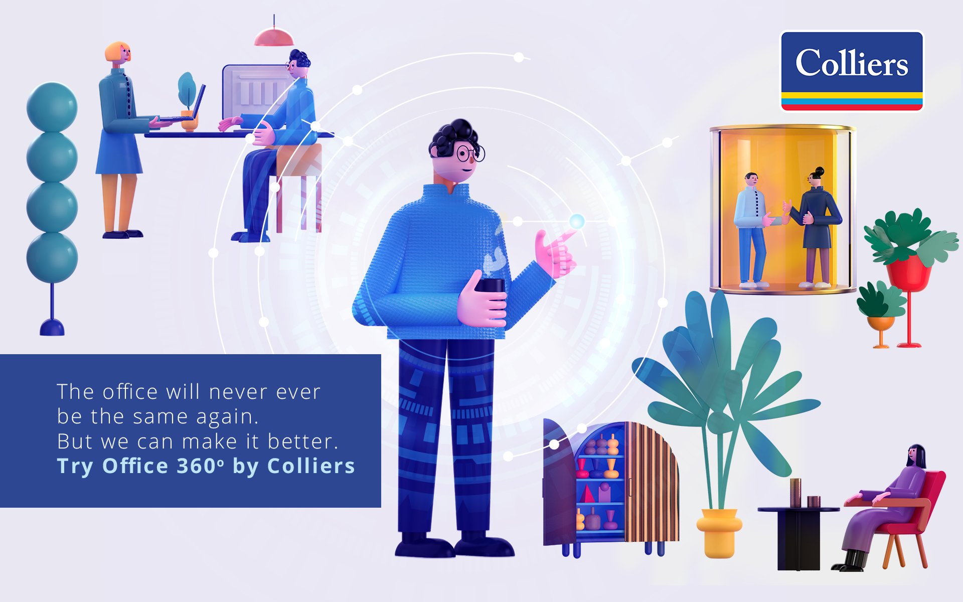 Prin lansarea Office 360°, strategia Colliers este de să acționeze ca un punct de contact comun pentru toate părțile implicate în procesul de relocare a clientului, pentru a asigura comunicarea în timp util între reprezentanții clientului, managerii de proiect ai proprietarului, managerii de șantier, precum și consultanții de design și proiectare, personalul în ansamblu al contractorilor și echipa de administrare a proprietății.
