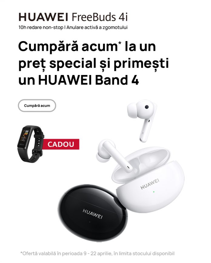 Pentru mai multe informații despre HUAWEI FreeBuds 4i și oferta care include un HUAWEI Band 4, vă invităm să vizitați website-ul oficial Huawei: https://consumer.huawei.com/ro/audio/freebuds4i/.