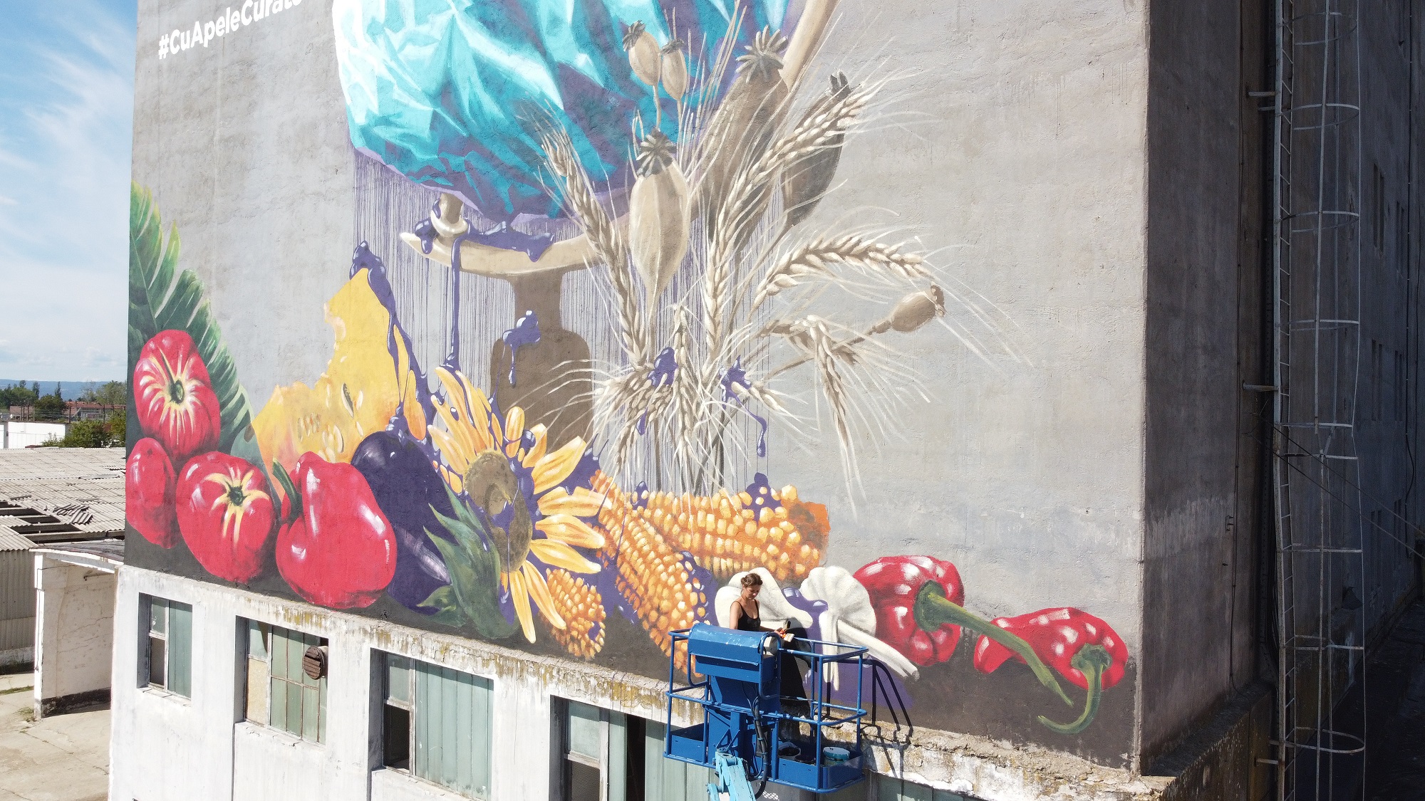 „Inspirată de naturile statice flamande, această variantă a ospățului vine ca o critică a felului în care societatea contemporană consumă natura. Globul pământesc, adesea folosit ca simbol al căutării și cunoașterii, ia aici forma unui sac de gunoi din plastic. Ca alternativă, alături sunt legume și fructe, împrăștiate pe lângă glob. Roadele pământului invadează ambientul ca un martor al trecerii timpului și al imuabilității plasticului care rămâne acolo mult timp după ce obiectul nu mai este de folos”, spune artista Wanda Hutira, realizatoarea muralului.