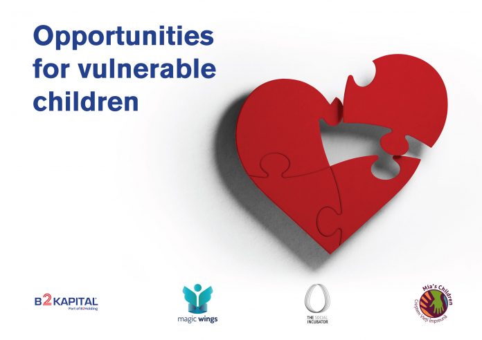 Împreună cu Asociațiile The Social Incubator și  Mia’s Children, B2Kapital PM  va sprijini integrarea socială și profesională a copiilor și tinerilor vulnerabili care provin, în mare parte, din sistemul de protecție socială, prin dezvoltarea și implementarea unor servicii care să adreseze nevoile specifice ale acestei categorii: acces la educație non-formală și integrare socio-profesională, pentru a le asigura o șansă în plus la un viitor mai bun.