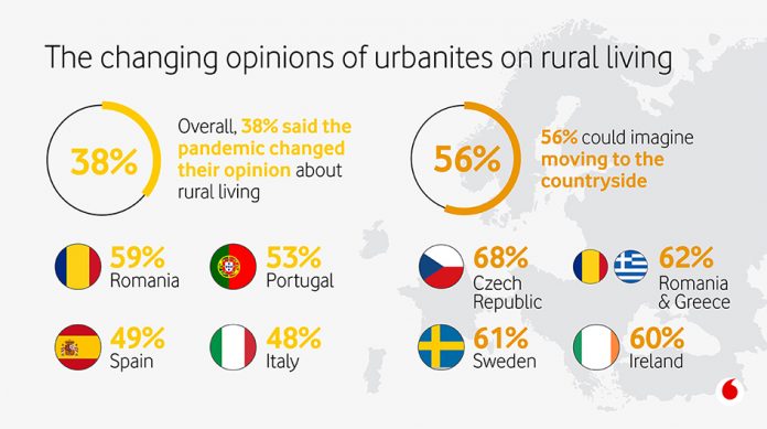 București, 30 iunie 2021 – Criza COVID-19 a schimbat atitudinea românilor cu privire la ideea de a trăi la țară: 59% dintre românii din urban intervievați declară că pandemia le-a influențat sau le-a schimbat opinia privind perspectiva de a locui la țară, potrivit studiului Digitalizarea Europei, comandat de Vodafone Institute și realizat de Kantar, care a cuprins peste 15.000 de persoane intervievate din 15 țări europene, inclusiv România.