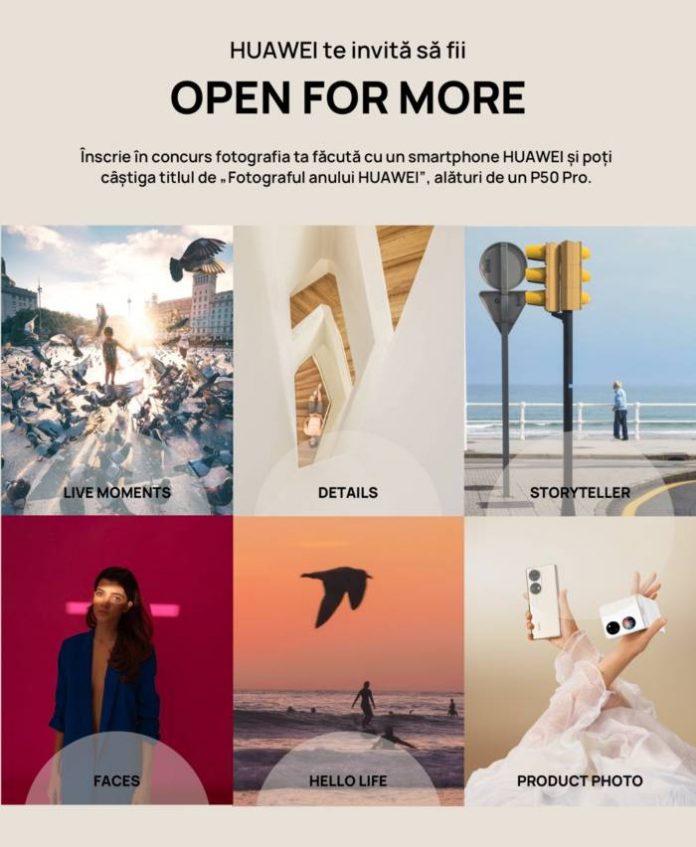 Competiția OPEN FOR MORE pentru fotografi amatori este organizată de Huawei în cadrul campaniei de lansare a celor mai noi smartphone-uri, HUAWEI P50 Pro și HUAWEI P50 Pocket, și își propune să îi ajute pe utilizatori să descopere cum pot expune mai bine emoția prin intermediul fotografiei. Imaginile și fotografiile pot exprima într-un singur cadru mai mult decât pot spune oamenii în cuvinte, iar aparatul potrivit, utilizat la întreaga lui capacitate, poate surprinde toată emoția unei priviri sau a unui gest.
