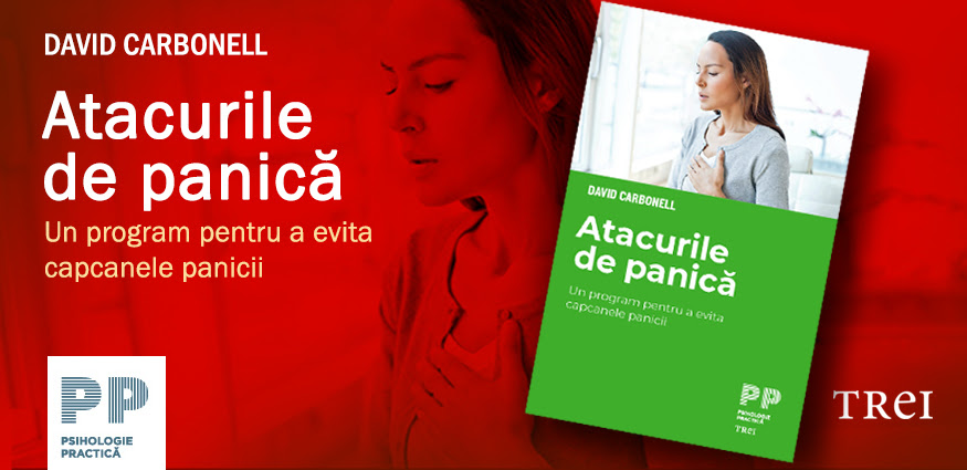 Când cineva suferă pentru prima dată de un atac de panică, nu știe exact cu ce se confruntă: să fie o boală, să fie niște probleme cu inima sau cu respirația, să fie oare „un dezechilibru chimic” sau vreo perturbare emoțională ori mentală? Iar când nici doctorul și nici cei apropiați nu mai înțeleg ce se întâmplă, cel afectat ajunge tot mai derutat și mai speriat, pierzându-și speranța în orice șansă de vindecare. Există însă o cale de ieșire și de evitare a acestei „capcane a panicii”, cum o numește psihologul american David Carbonell, specializat în tratarea anxietăților și fobiilor. Bazându-se pe o abordare cognitivă ce uneori poate părea contraintuitivă, dar și pe tehnici de relaxare, respirație și autohiopnoză, cartea explică mecanismele din spatele atacurilor de panică, după care oferă, alături de numeroase teme și exerciții, un program de expunere și de desensibilizare față de grijile și temerile acaparatoare. În fine, volumul prezintă detalii suplimentare despre cinci fobii frecvent asociate cu atacurile de panică – fobia socială, teama de a zbura, de a vorbi în public, de șofat și claustrofobia. David Carbonell, PhD., psiholog clinician și speaker, este directorul fondator al Centrului de Tratament al Anxietății din Chicago, unde tratează de 20 de ani pacienți cu tulburări de anxietate. |