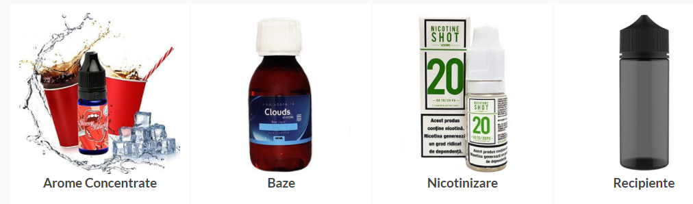 Aceste trei ingrediente le amesteci intr-un recipient din care poti umple rezervorul tigarii electronice. Recipientele sunt de mai multe dimensiuni, de la 10 ml pana la 230 ml, gradate sau simple. In acest fel vei putea avea la tine in permanenta o sticluta cu lichidul favorit.