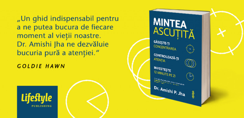 Editura Lifestyle Publishing a publicat volumul Mintea ascuțită de Dr. Amishi P. Jha – “o lectură obligatorie pentru aceste vremuri agitate”, după cum a caracterizat-o Daniel Goleman, autorul bestsellerului internațional Inteligența emoțională. Dr. Amishi Jha, renumită expertă în neuroștiințe, și-a dedicat viața profesională încercării de a înțelege știința atenției la toate nivelurile – de la studii de imagistică cerebrală în laborator, la testarea pe teren a soldaților, pompierilor și sportivilor. Și-a asumat misiunea de a determina științific cum putem dirija întreaga putere a atenției noastre pentru a face față mai bine tuturor solicitărilor vieții.