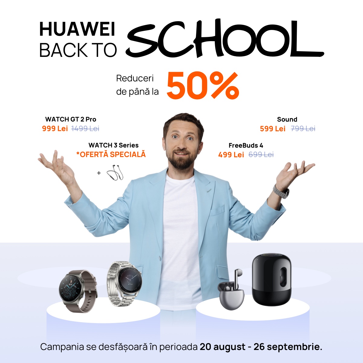 O nouă săptămână din campania Back To School aduce în prim-plan categoria de produse wearables și audio. Vedeta săptămânii este noua serie de smarthwatch-uri HUAWEI WATCH 3 (HUAWEI  WATCH 3 și HUAWEI WATCH 3 Pro), care pot fi găsite în magazinul online Huawei Online Store într-o ofertă de tip bundle alături de HUAWEI FreeLace. De asemenea, HUAWEI FreeLace, căștile Huawei cu tehnologie HiPair, beneficiază de un discount de 50%.