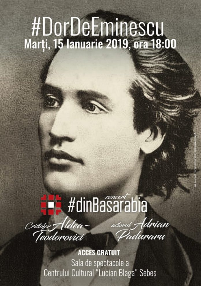 Primăria și Consiliul Local al Municipiului Sebeș, Centrul Cultural “Lucian Blaga” Sebeș au onoarea de a lansa o invitație de suflet pentru a marca, la Sebeș, Ziua Culturii Naționale, printr-un spectacol extraordinar intitulat “Dor de Eminescu”, oferit de artistul din Basarabia, Cristofor Aldea Teodorovici și de actorul Adrian Păduraru.