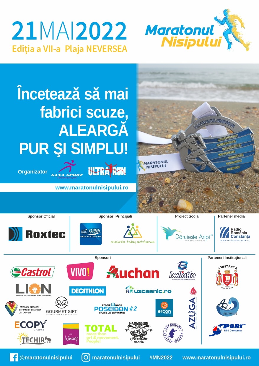 Evenimentul sportiv internațional, ajuns la a șaptea ediție, este organizat de Asociația Sportivă “SanaSport” și Radio Constanța, în parteneriat cu Direcția Județeană de Sport și Tineret Constanța, Primăria Constanța și Administrația Bazinală de Apă Dobrogea Litoral. Maratonul Nisipului, care se adresează atât alergătorilor amatori, cât și sportivilor de performanță, conține patru probe competitive (maraton, semimaraton, cursa de 10km și de 5 km) și două curse populare – crosul Family Run și Campionii Școlii, care au menirea de a-i aduce mai aproape de sport, atât pe părinți, cât mai ales pe copiii acestora și de a lupta împotriva cancerului prin asigurarea de tratamente medicale la domiciliu pentru copii din judetul Constanta – proiectul social inițiat de către Asociația “Dăruiește Aripi”.