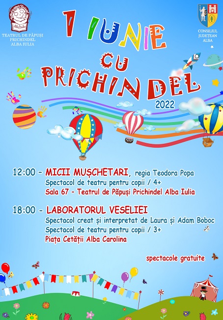 - 1 iunie 2022, orele 12:00, la Sala 67 a Teatrului de Păpuși „Prichindel” va fi prezentat spectacolul „Micii mușchetari”, regia Teodora Popa;