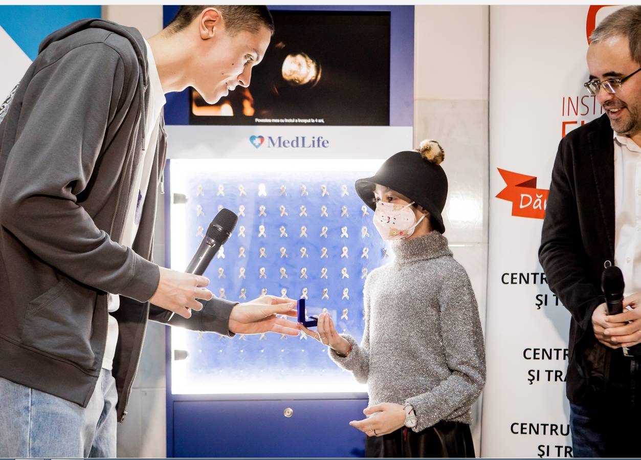 București, 18 decembrie 2023: MedLife, cea mai mare rețea de servicii medicale private din România, marchează un an de la lansarea primului și singurului program gratuit de testare genetică pentru copiii cu cancer, cu acoperire națională, din România printr-un eveniment deosebit care a avut loc astăzi la Institutul Clinic Fundeni. În cadrul acestuia, multiplul campion european și mondial la natație, David Popovici, a oferit primele 20 de fundițe aurii, simbol al luptei împotriva cancerului pediatric, copiilor care au învins această boală cruntă, devenind astfel Campioni ai Speranței. Fundițele dăruite astăzi sunt doar o parte dintre cele 100 de bucăți realizate din medalia pe care David Popovici a obținut-o anul trecut la Mondialele de la Budapesta în proba de 200 m liber masculin și pe care a donat-o în cadrul programului MedLife cunoscut sub numele #SperanțaNuMoareDeCancer. Alte 80 de fundițe, expuse astăzi într-un panou la Institutul Clinic Fundeni, își așteaptă campionii.