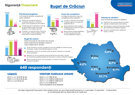 Romanii acorda tot mai multa atentie cheltuielilor de sarbatori si cauta sa-si planifice si sa-si optimizeze bugetul, arata un sondaj online desfasurat pe www.SigurantaFinanciara.ro, la initiativa Provident Financial Romania.