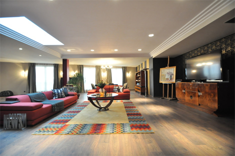 Apartamentul de lux tip penthouse cumparat cu 1.450.000 euro (ilustrat in imaginile de mai sus) are 5 camere, situate pe 2 nivele si o terasa spectaculoasa. in amenajarea lui s-au investit peste 300.000 euro in finisaje premium ce au inclus placari cu granit, lemn sau piatra naturala si un sistem de climatizare performant.